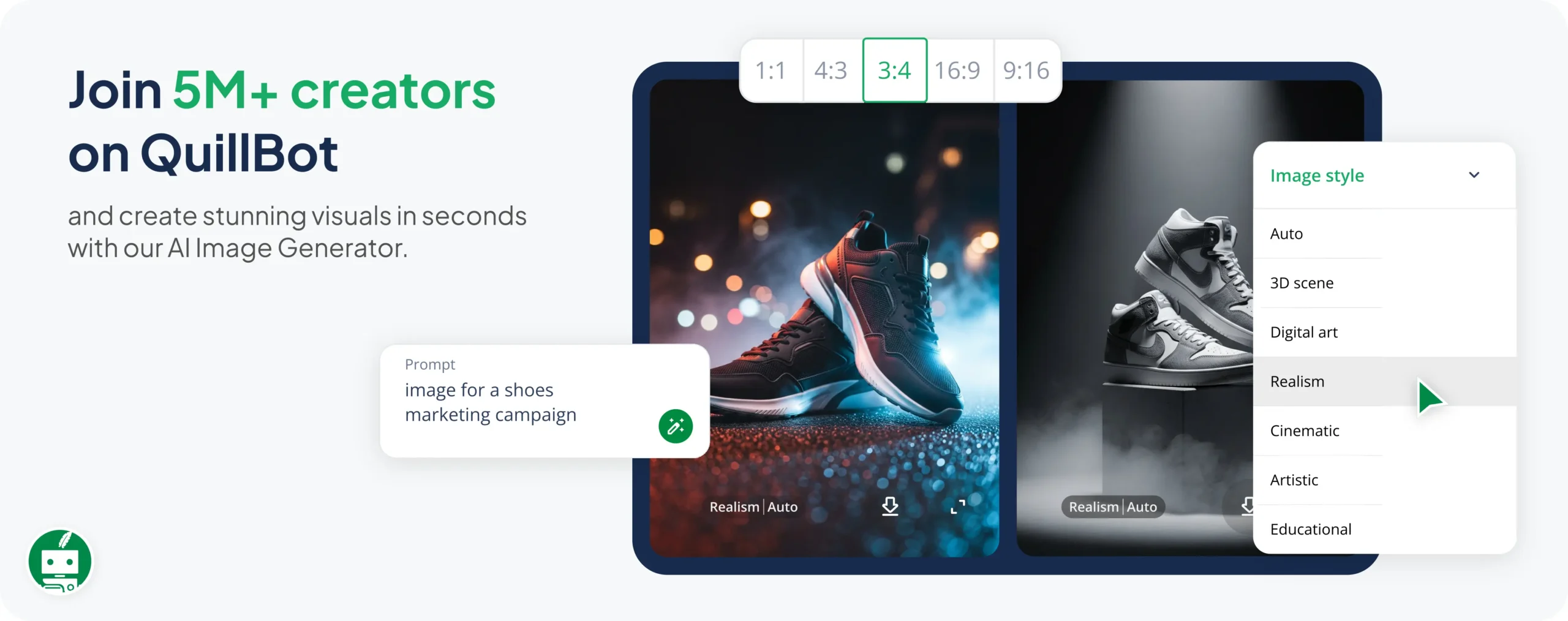- Select your style and aspect ratio: Choose the size and style that best fit your design. Not sure what you want? Leave this on “Auto” to let the tool decide for you.