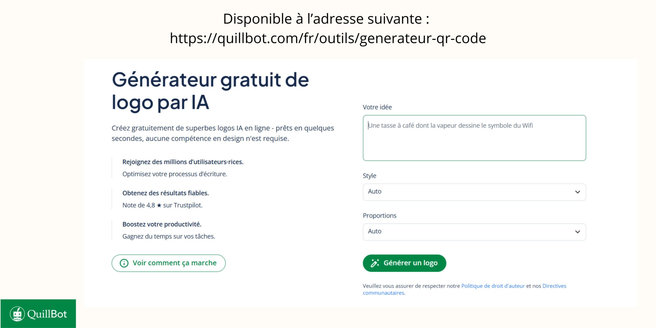 Notre astuce : pensez à utiliser le générateur de logo gratuit QuillBot !